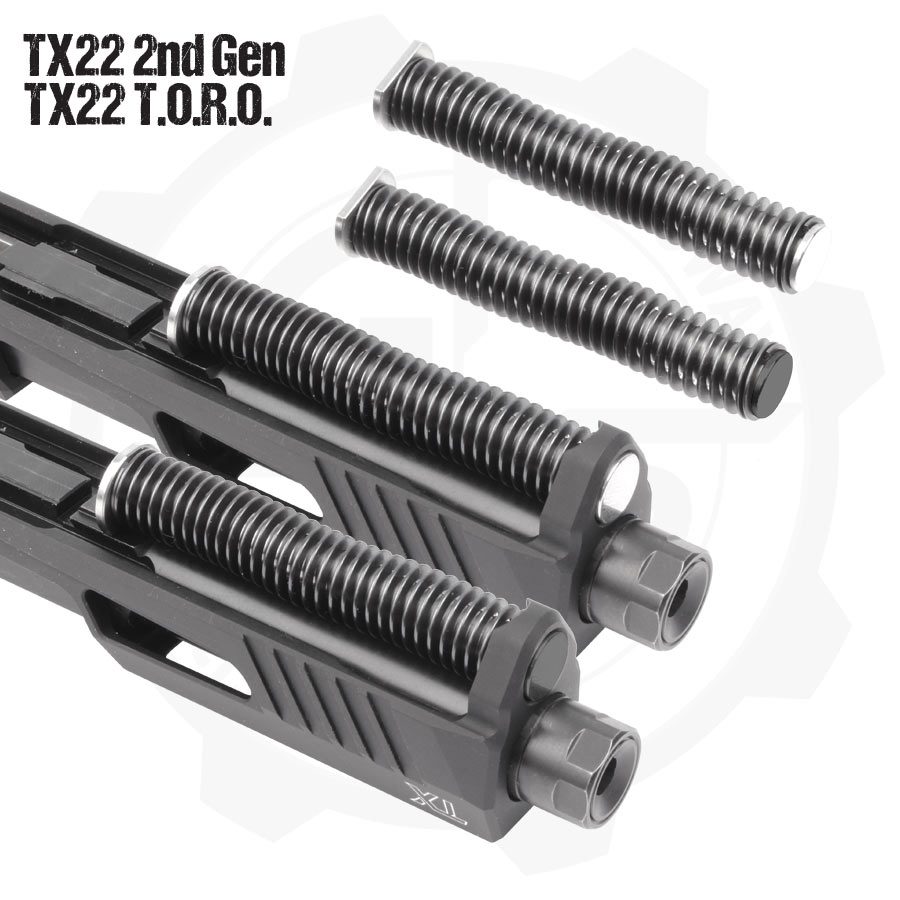 Our Taurus TX22 T.O.R.O. and 2nd generation TX22 guide rods are made of Stainless Steel and come pre-assembled to your spring rate selection. The recoil springs are made for us by ISMI, a leader in the spring market here in the U.S.A, to our specifications. Made on the same machines that make springs for Formula 1 and IndyCar race cars, made exclusively with aerospace specification alloys, these springs are made to last and provide a more enjoyable shooting experience.